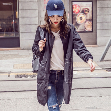 實(shí)拍 春秋新款韓版寬松大碼中長(zhǎng)款風(fēng)衣棒球服女外套潮 /