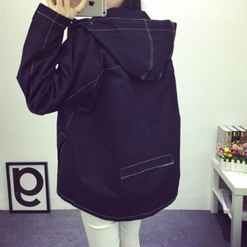 春秋新款韓版學院風寬松大碼BF百搭連帽工裝風衣原宿外 /