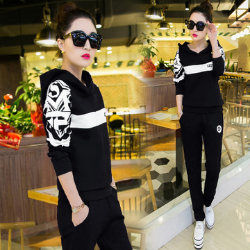 春季休閑套裝女春秋長袖學生裝大碼套頭衛衣寬松兩件套 /