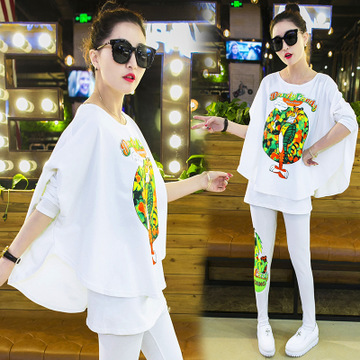 春季新款韓版女裝時尚大碼顯瘦蝙蝠衫運動服休閑兩件套潮 /