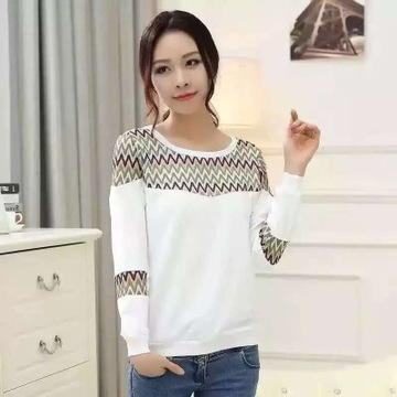 春秋新款韓版時尚蕾絲拼接圓領寬松大碼長袖t恤女裝上衣尾單 /