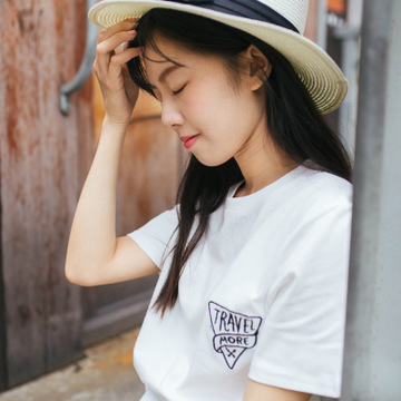 6065夏季新款森系學院風小清新文藝百搭圓領棉麻短袖T恤女夏寬松 /