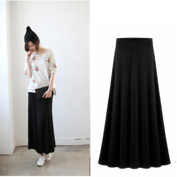 韓版新款春夏大碼長裙修身顯瘦純色大擺莫代爾包臀半身裙 /