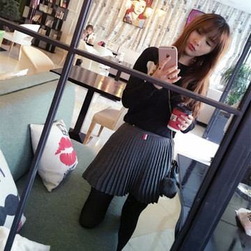 春夏新款彩色條紋學(xué)院風(fēng)百褶裙風(fēng)琴褶皺純色收腰金扣半身裙女 /