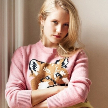 春秋新款水原希子 秋冬狐貍圖案雙色花紗寬松套頭羊毛毛衣女 /