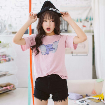 新款小象卡通印花圓領短袖t恤女夏季學生純棉8056 /
