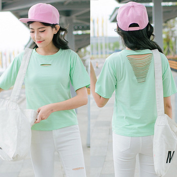 韓國東大門新款印花個性潮流破洞t恤女短袖寬松女8112 /