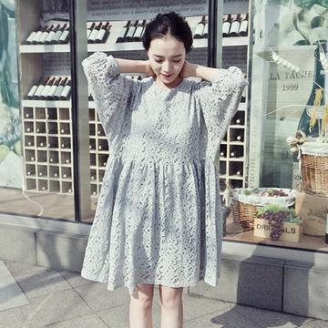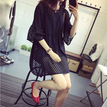 加肥胖MM新款超大碼女裝中長款蕾絲連衣裙鏤空打底裙 /
