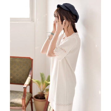春秋新款韓國高定半工藝縷空圓領寬松顯瘦短袖連衣裙女6 /