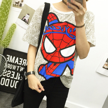 夏季韓版寬松個性卡通印染動漫圓領女式上衣套頭t恤打底衫一件發 /