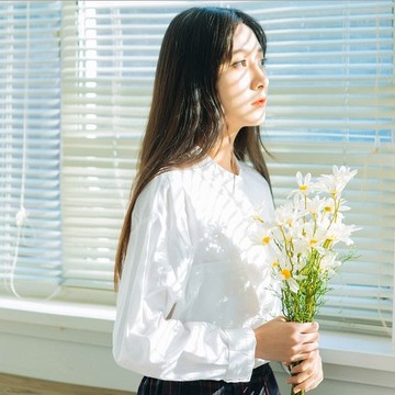 春季新款 文藝復古小立領白色長袖百搭棉襯衫女 /
