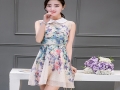 夏季娃娃領連衣裙歐根紗印花打底裙新款修身顯瘦無袖連衣裙潮 /