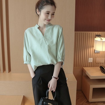 新款韓寬松休閑百搭大碼白襯衫V領襯衣女 /