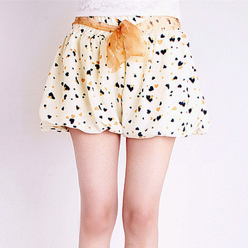 女夏印花闊腿褲高腰燈籠褲百搭熱褲韓版沙灘裙褲雪紡短褲裙 /