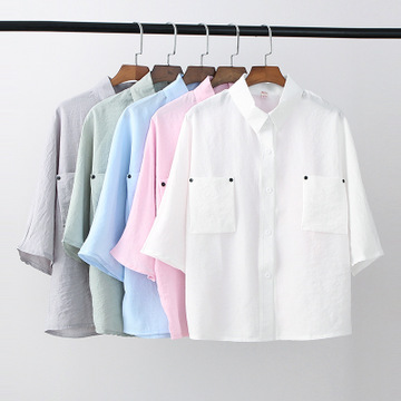 廠家直銷韓版女裝新品 夏日清涼薄款純色雙口袋蝙蝠袖襯衫 /