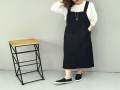 熱賣 兩粒扣肩帶寬松口袋側(cè)邊拉鏈磨破 中長款直筒牛仔背帶長裙 /