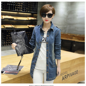 實(shí)拍春裝新款甜美女裝韓版修身中長款長袖牛仔外套一件起批 /