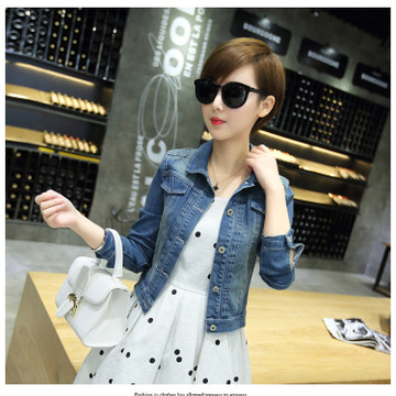 實(shí)拍春裝韓版甜美女裝新款修身顯瘦長袖牛仔衣外套一件起批 /