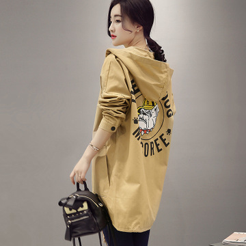 春裝新品韓版寬松大碼女裝薄款休閑風衣中長款連帽外套 3738 /