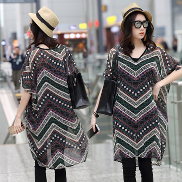 200斤胖MM寬松大碼女裝民族風印花雪紡兩件套連衣裙女 /