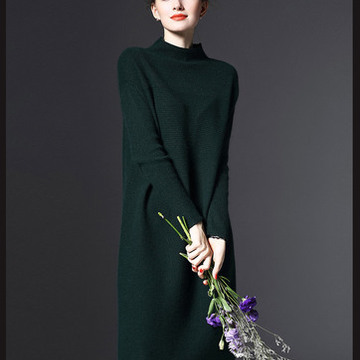 秋冬大碼女新款簡(jiǎn)約百搭長(zhǎng)袖寬松打底裙顯瘦純色針織連衣裙女 /