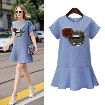 夏裝新款歐美風(fēng)加肥加大碼時(shí)尚休閑寬松顯瘦女裝裙子連衣裙女 /