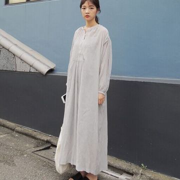 韓國NEW ARRIVAL 復古中式領寬松長款連衣裙 /