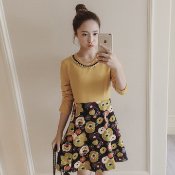 秋裝新款大碼女裝胖妹妹顯瘦印花鏈條連衣裙 /