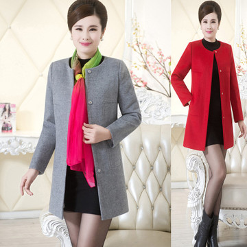 春秋大碼中老年女裝羊毛呢大衣中年媽媽裝羊絨呢子風衣中長款外套 /