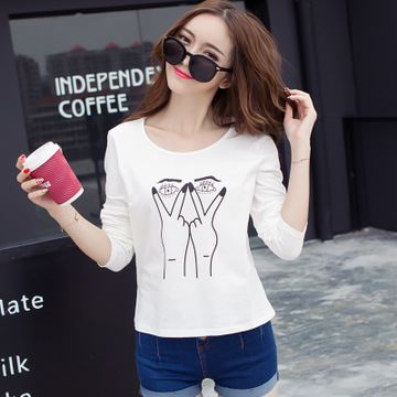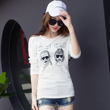 年秋裝新品韓版長袖印花T恤女 圓領直筒百搭T恤 /