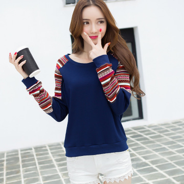 秋裝新款拼接長袖T恤韓版休閑套頭寬松衛衣大碼顯瘦上衣潮 /
