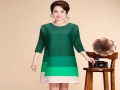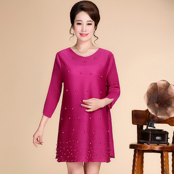 春夏季新款圓領套頭三宅壓皺中長款九分袖連衣裙媽媽裝 /