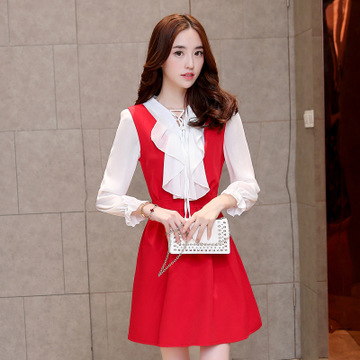 實拍 早秋新款女裝修身顯瘦氣質優雅秋季連衣裙套裙 /
