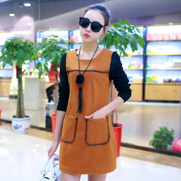 韓版女長袖打底裙打底衫中長款加厚毛呢連衣裙歐洲站 /