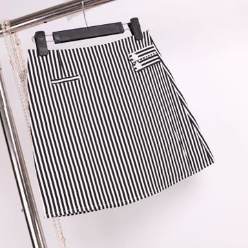 實(shí)拍 夏裝新款小清新百搭條紋小短裙雙粒扣條紋半身裙女A字裙 /