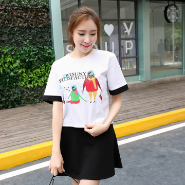 短袖t恤女夏裝新款韓版學院寬松短款圓領學生上衣女廠家直銷 /