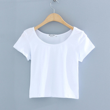 露臍短袖t恤女夏短款修身韓版純棉短袖半袖純色上衣體恤廠家批發 /
