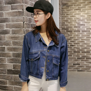 實拍2303#春季新款韓版BF風經典休閑寬松短款長袖牛仔外套 /