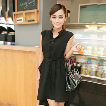薄款813新款夏裝連衣裙無袖氣質馬甲裙蝴蝶結韓版修身背心裙 /