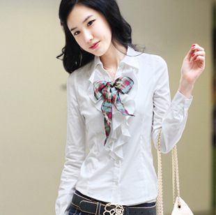 春裝新品韓版女裝蝴蝶結女士襯衣 時尚襯衫復古泡泡長袖襯衫 /