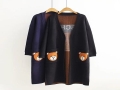 秋冬女裝韓版寬松百搭小熊圖案雙口袋超長加厚毛衣開衫外套女 /