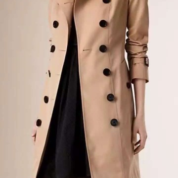 年早秋專柜最新款水溶蕾絲雙層領嘎巴甸棉中長款防水風衣外套女 /