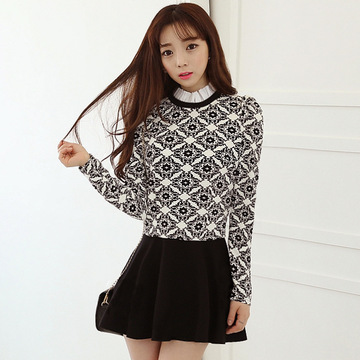 實拍秋裝韓版女裝菏葉邊領收腰顯瘦連衣裙批發 /
