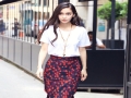 楊穎Angelababy街拍同款白T恤不規則魚尾長裙套裝 /