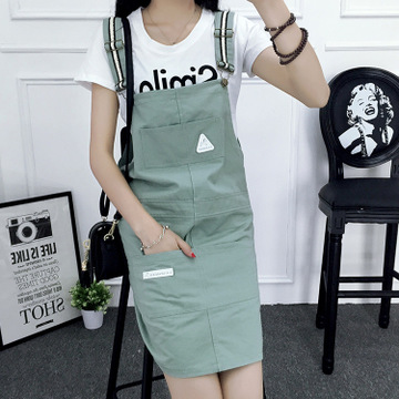 新款韓版糖果色顯瘦背帶裙牛仔短裙女連衣裙夏修身裙一件代發 /