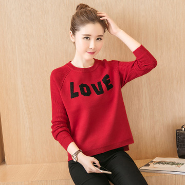實(shí)拍秋上衣韓版love字母愛(ài)心短款套頭毛衣長(zhǎng)袖針織衫 /