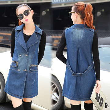 牛仔馬甲女秋冬新款大碼韓版雙排扣口袋馬甲時尚中長款外套 /