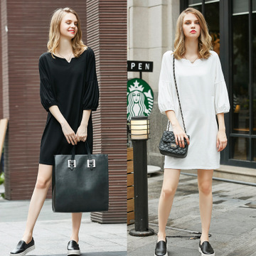 實拍 歐美大碼女裝胖MM加肥加大燈籠袖時尚顯瘦連衣裙 /
