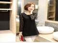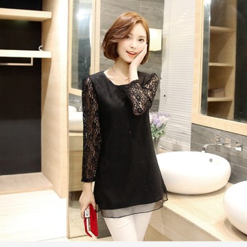 實拍新款秋季韓版顯瘦大碼女裝長袖蕾絲衫中長款寬松A字打底裙 /