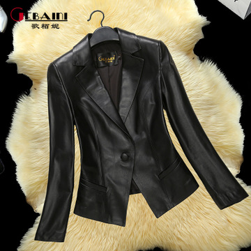 歌栢妮冬韓版機車真皮皮衣女短款修身小西裝綿羊皮外套夾克 /